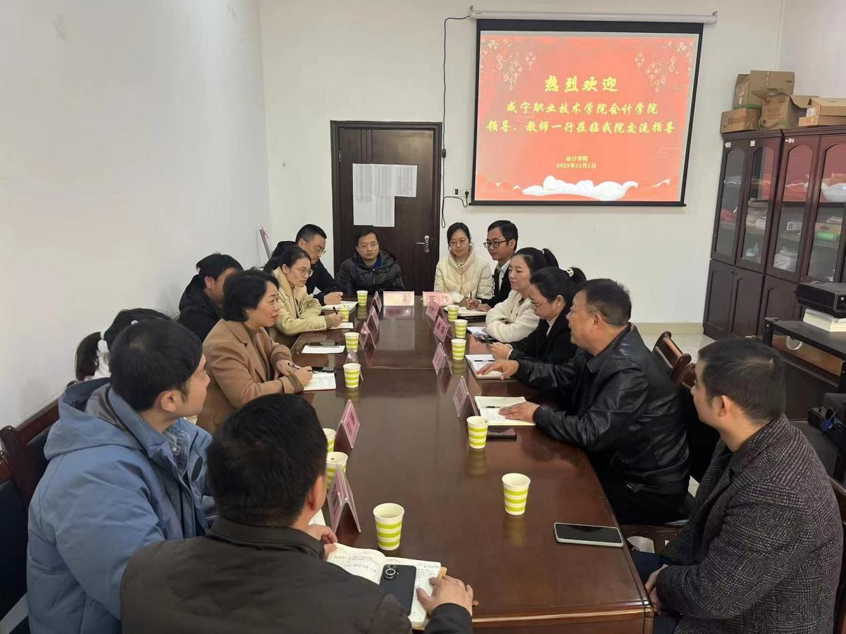 12月1日,咸宁职业技术学院会计学院院长何慧玲、党总支书记镇咸辉及骨干教师等一行6人来bat365考察交流。会计学院院长万凯、党总支书记张家顺、会计学院副院长齐洁、财税金融学院副院长周莉、会计学院教研室主任余晖文和席伟明老师热情接待来访领导教师,双方在红楼212办公室进行座谈交流。
