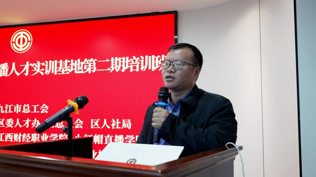 浔阳区人力资源和社会保障局副局长翟福强、浔阳区总工会副主席郑波、小红帽直播学院创始人孙晨院长出席了开班仪式,经济贸易学院肖细根院长讲话鼓励同学们珍惜此次学习机会,培训期间严格要求自己,提升个人实践技能,争取学有所成。