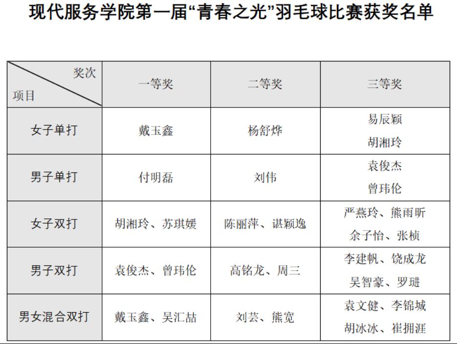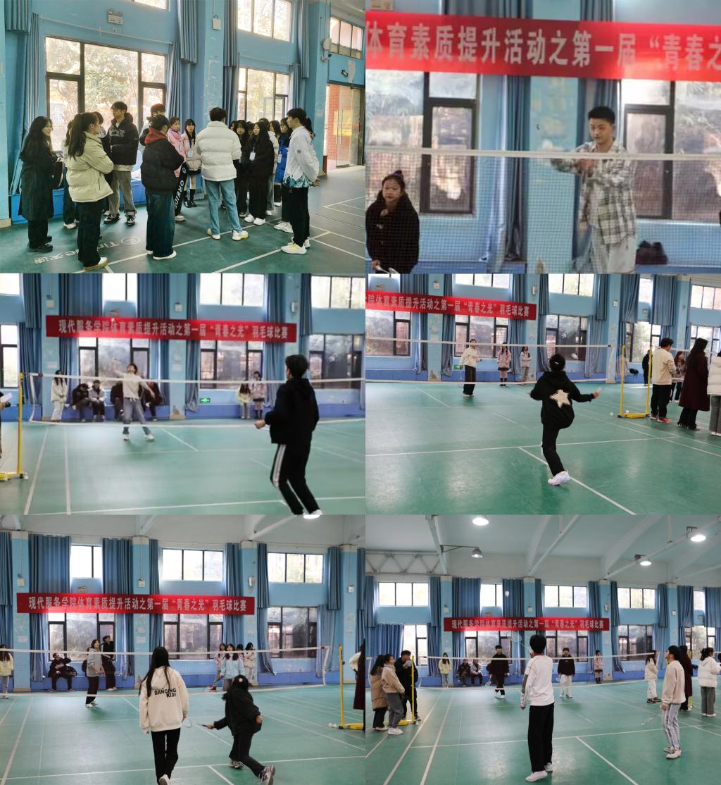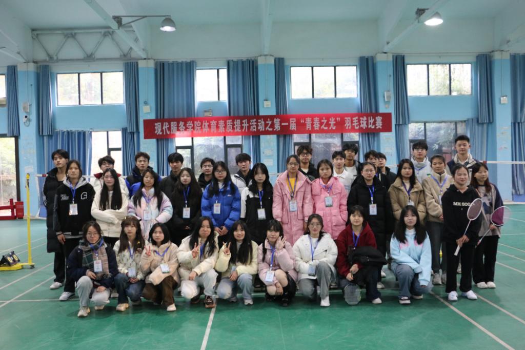 为丰富校园文化生活,激发学生的运动兴趣,促进学生的身心健康,12月21-22日,现代服务学院在浔阳校区羽毛球馆成功举办了第一届“青春之光”羽毛球比赛。本次比赛共设男、女单打,男、女双打以及混合双打五个项目,bat36522、23级各专业近70位选手参加。