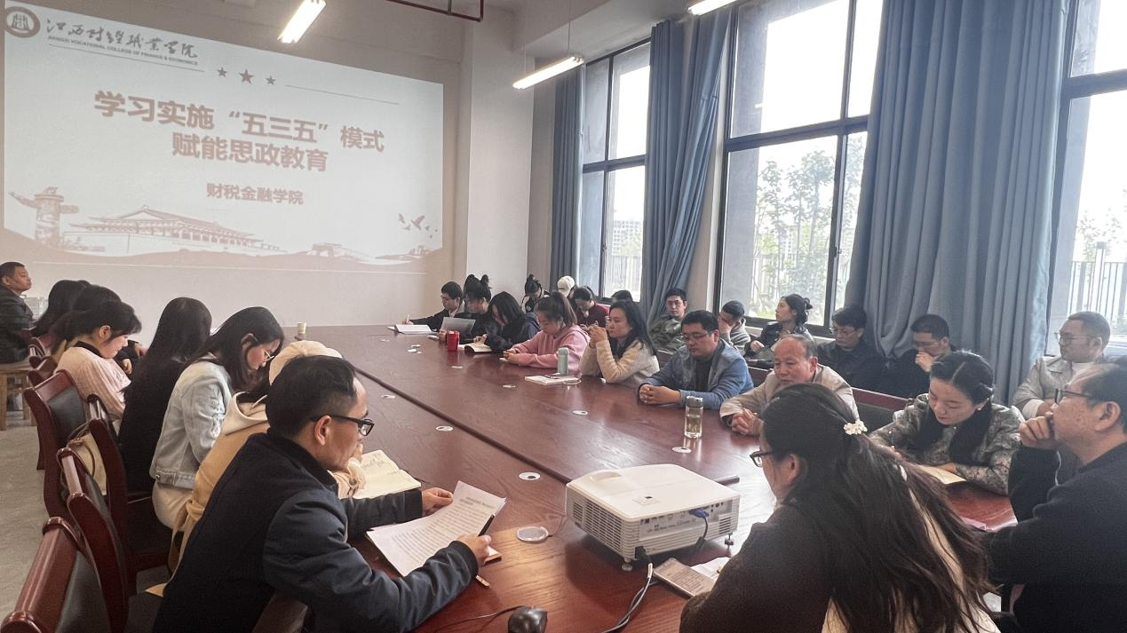 近日,江西日报刊登了刘彪文书记的署名文章《实施“五三五”模式 赋能思政教育》,文章深刻阐述了思政教育的重要性和实施新模式的必要性。4月9日下午,财税金融学院在洙泗学馆B101办公室组织全体教职工认真学习了这篇文章,并就如何在新模式下加强思政教育进行了深入讨论。