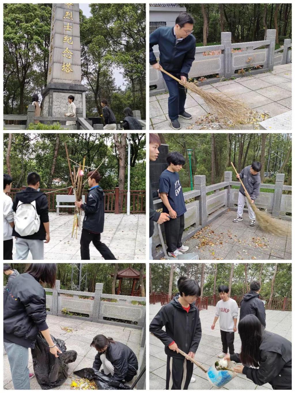 苍松翠柏寓精神,绿荫掩映忠烈魂。活动现场,同学们排着整齐有序的队伍瞻仰革命烈士纪念塔,并为中国人民解放事业和国家建设事业英勇献身的烈士敬献鲜花,以寄托对革命烈士的哀悼之情。默哀、献花结束后,基础教育学院师生自发地打扫陵园,清除杂草、枯叶和垃圾,为烈士陵园营造优美整洁的环境,用实际行动表达对革命先烈的敬仰与哀思。