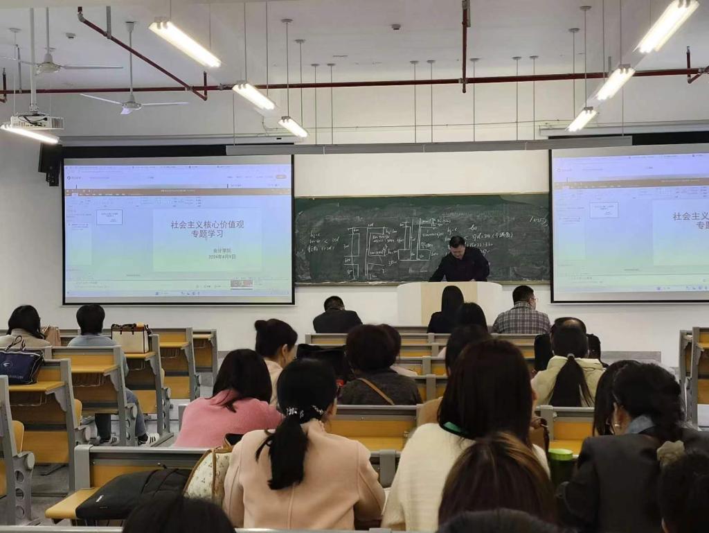 为进一步引导全体教职工培育和践行社会主义核心价值观,以社会主义核心价值观引领bat365师德师风建设,落实好立德树人根本任务。4月9日下午,会计学院在一教337教室召开社会主义核心价值观专题学习会。会议由学院党总支书记张家顺主持,全体教职工参加会议。