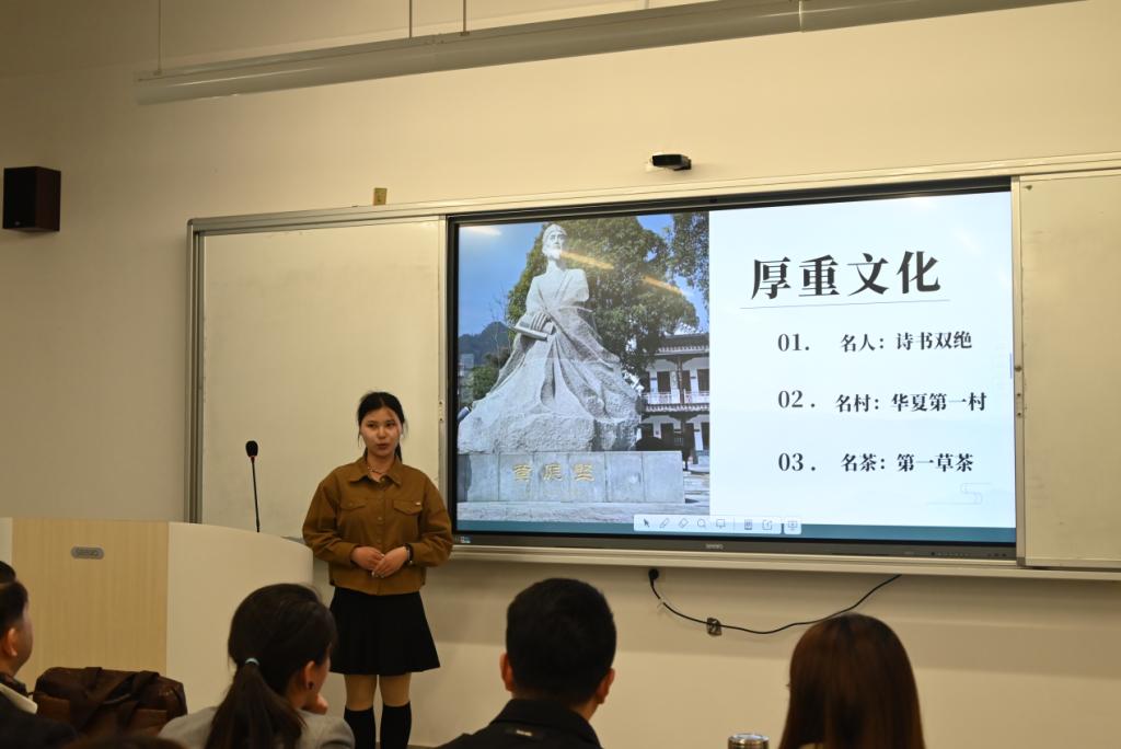 活动伊始熊韬对本次活动进行了致辞,他表示文化是一个民族的灵魂,而家乡文化更是一个地方的独特标识与精神根基。无论是乡音、美食、建筑还是艺术作品,都是每个当地人最值得骄傲和自豪的文化符号。熊韬鼓励每一位同学常怀对家乡的“文化自信”,热爱家乡的文化、精神和品质,在今后的学习和生活中应当积极参与社会实践,持续深入了解家乡文化,以实际行动传承和发扬家乡文化,让家乡优秀传统文化在新时代焕发出更加绚丽的光彩。