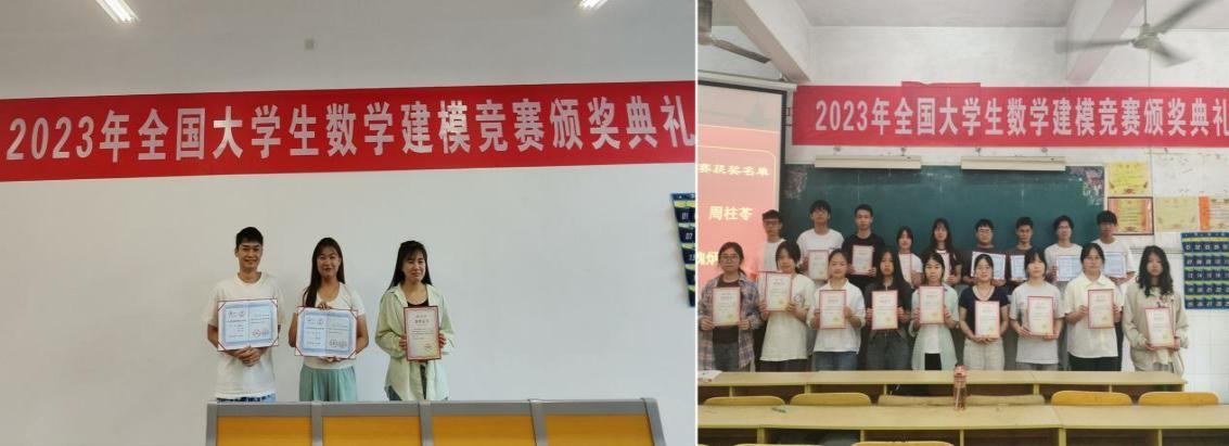最后,主持人宣布为2023年全国大学生数学建模竞赛获奖学生颁奖。2023年,bat365共荣获国家二等奖2项、江西省一等奖2项,江西省二等奖3项。在热烈的掌声中,七支代表队的21名同学上台领奖,与会领导和指导老师为获奖学生颁发了获奖证书。