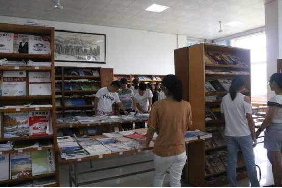 接着,新生们来到校图书馆进行参观。图书馆馆长及管理员热情地向同学们介绍了图书馆概况、图书借阅流程及相关的借阅规章,并欢迎同学们常来图书馆借阅图书资料。