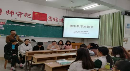 第三阶段——召开教学座谈会。为了更细致了解各年级学生的专业学习和生活状况,11月23日下午以教研室牵头,分年级分别在教学楼609、610、会计基本技能实训室一组织召开了2017-2018学年第一学期期中教学座谈会,教研室主任及课程组教师代表出席座谈会,来自学院15、16、17级各班300余名学生代表参加了座谈会。会学生代表主要围绕目前课堂教学、机房条件、生活条件等几个方面存在的问题,积极发言。