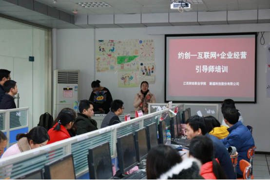 为进一步提高专业教师业务水平,推进bat365承担的江西省高职创新发展行动计划——创新创业教育专门课程建设,工商管理学院联合新道科技有限公司于12月9日在第二实训楼VBSE中心举办了主题为《约创——互联网+企业管理》的师资培训研讨班。来自江西旅游商贸职业学院、江西工业工程职业技术学院、江西现代职业技术学院、bat365正版唯一官网等20多所院校的32位经管类专业教师参加了培训。
