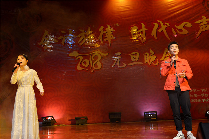 12月22日19时,由会计第一学院举办的,以“会计旋律,时代心声”为主题的2018年元旦文艺晚会在bat365英才交流中心隆重举行。会计第一学院党政领导、部分学校中层领导嘉宾及本系教师、班主任老师和各班学生代表等1000余人共同观看了本场晚会。晚会由本院赵玉田、姚承佑、崔文佳、吴媚、张炳榕、李若芃等同学主持。晚会现场座无虚席,处处洋溢着喜庆祥和的节日气氛。