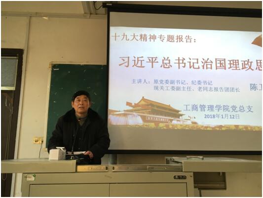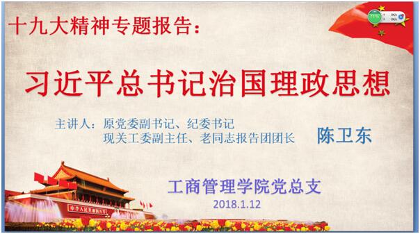 为切实把思想和行动统一到习近平新时代中国特色社会主义思想上来,统一到党的十九大确定的重大决策部署上来,工商管理学院于1月12日在综合楼阶梯教室1举办了《认真学习、深刻领会、切实贯彻习近平总书记治国理政思想》专题讲座。工商管理学院师生党员参加了学习。
