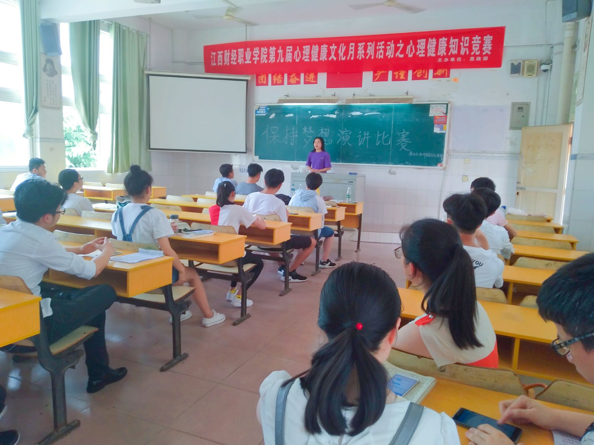 为了丰富校园文化活动,展现当代大学生的青春风采。经济贸易(旅游管理)学院于5月25日晚在教学楼714举办了“梦想飞扬”为主题的演讲比赛。