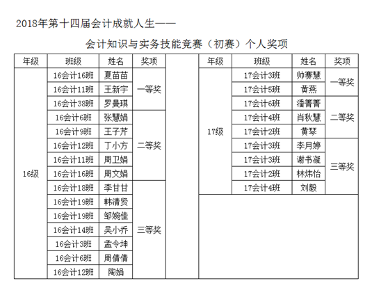 会计知识与实务技能竞赛既是一场考核同学们个人综合素质的大赛,也是一场决定参赛班级能否晋级总决赛的重要赛事。各班高度重视,认真组织,选派精英选手参赛。竞赛通过模拟企业发生的常规经济业务,全面、深入地考核了同学们对会计理论知识与实务操作相结合的综合能力。比赛中,同学们沉着冷静,审慎思考,仔细作答,充分发挥了个人的专业技能水平,展现了bat365学生良好的专业知识素养和扎实的实务操作能力。经过90分钟的激烈比拼, 16会计11班、17会计3班等12支班级代表队最终脱颖而出,获得了参加此次总决赛的入场券;16会计16班夏苗苗、17会计3班帅蕾慧等24名同学获得个人单项奖。