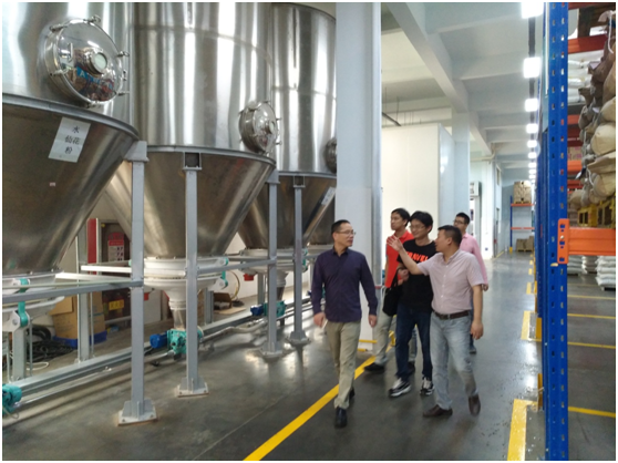 随后,在李总的陪同下,冯弋江一行参观了公司的生产部、包装部、仓储部及研发部。