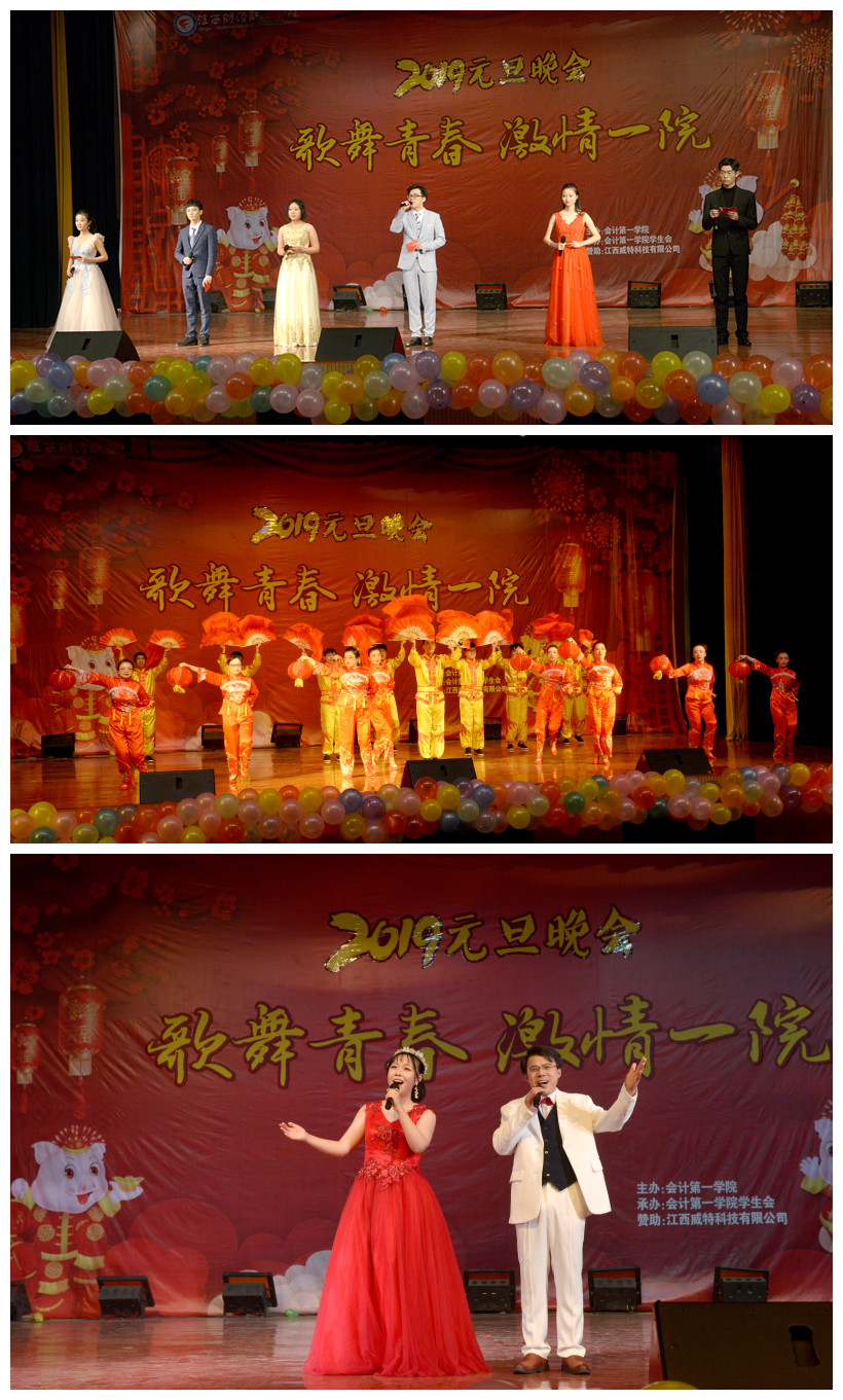 2018年12月24日19时,由会计第一学院精心筹备的以“歌舞青春,激情一院”为主题的2019年元旦文艺晚会在bat365英才交流中心隆重举行。会计第一学院党政领导及本系师生代表等1000余人共同观看了本场晚会。晚会由本院徐贵成、张煦橦、张远鑫、马媛媛、董洛洛、张柄熔6位同学主持。晚会现场座无虚席,处处洋溢着喜庆祥和的节日气氛。