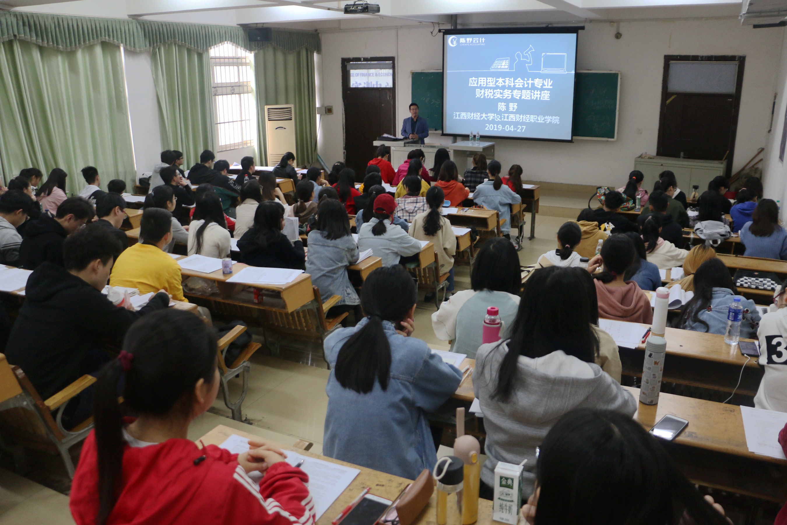 为使应用型本科生更深入掌握和运用专业知识,着实提高实践操作能力,2019年4月27日,本科部诚邀全国会计职业教育专业委员会专家导师、国家注册税务师陈野老师,在综合楼阶梯教室1举办了8个小时的财税实务专题讲座。本科部2017级全体学生及本科部部分老师参加。