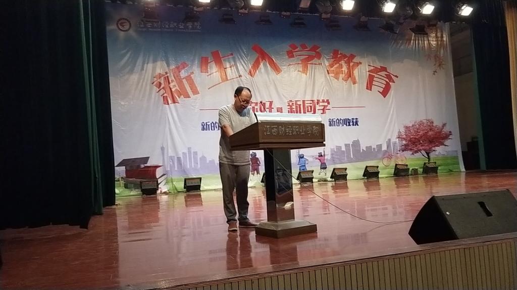 最后经贸学院党总支但汉彪书记做总结讲话。但汉彪书记以“去年三百九,今朝四九六,经旅大丰收,增量一百余”作为总结发言的开头引发了全场的喝彩,随后书记用“学习、为人、处事”六字对新生进行了入学教育,在但汉彪书记的总结发言中,能感受到书记对新生的谆谆教诲。学会学习,学会为人,学会处事,学会欣赏,学会包容,学会合作,学会生活,学会一切的一切。
