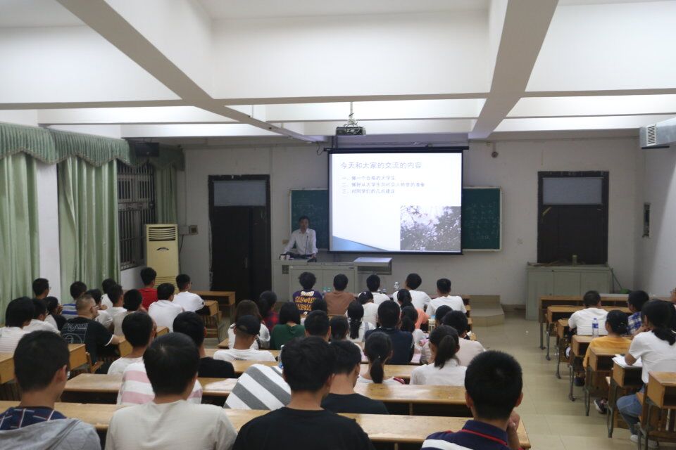 2019年9月25日晚七点,讲座在综合楼阶梯教室(一)准时开讲。李洪春教授首先提到专业不分优劣而重在学精,作为一个大学生要有目标、有方向。他强调了“成功”的内涵,他认为成功就是逐步实现有价值的理想,得到理想的结果。