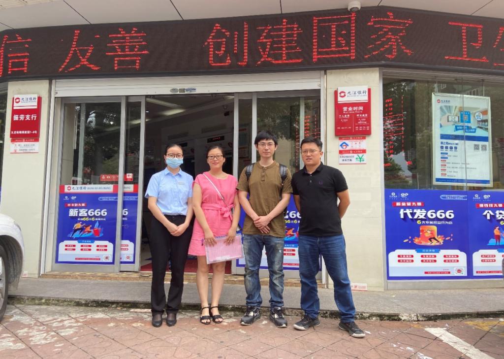 2020年7月2日上午,为推进及完善金融类专业产教融合,进一步加深校企合作深度与广度,财税金融学院王怡然副书记、金融教研室主任龚奕老师、何婧老师一行到九江银行振劳支行开展校企合作调研,九江银行振劳支行负责人热情接待了调研小组。