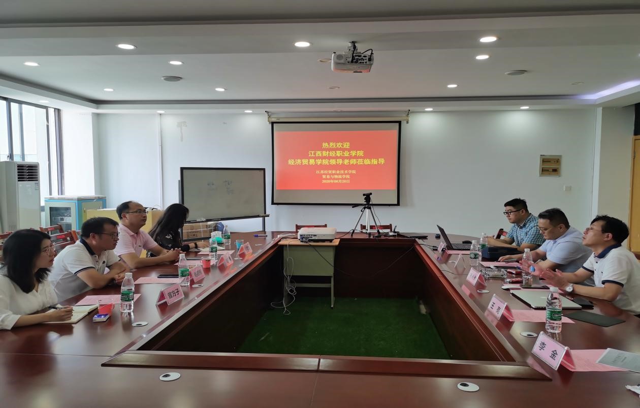考察团一行,首先走访了江苏经贸职业技术学院,并与贸易与物流学院院长吴洪贵、电子商务教研室主任冯宪伟、南京奥派信息产业股份有限公司董事长徐林海等进行深入座谈交流,吴院长介绍:贸易与物流学院是江苏经贸职业技术学院办学规模最大、综合实力强、专业建设有特色的二级学院,也是国家级职业教育移动商务专业教学资源库主持单位、全国跨境电商专门人才培养示范单位、国家级高等职业院校移动商务专业教学标准执笔单位,也是国家“双高”校,高水平电子商务专业群建设单位。冯主任对高水平电子商务专业群建设思路、国家级教学团队方案、一带一路电商谷计划、智慧商贸产业园等进行了详细的讲解。会后考察团实地参观了全国电子商务协同教育中心、跨境电商指挥中心、移动商务、智慧零售、智慧物流、商务数据分析实训室等,给考察团留下了深刻的印象。