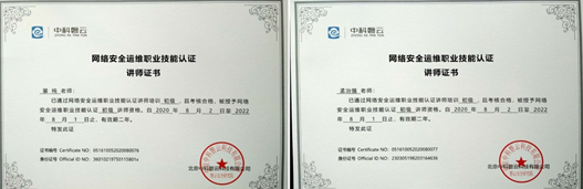本次培训主要从1+X证书制度的意义与政策解读、网络安全运维职业技能等级标准解读、1+X证书制度及职业技能等级标准、网络安全运维职业技能初级理论知识点讲解以及网络安全运维职业技能初级实践操作指导等几个方面展开。两位教师认真学习相关理论知识与实践操作,并顺利通过网络安全运维职业技能证书认证考试。