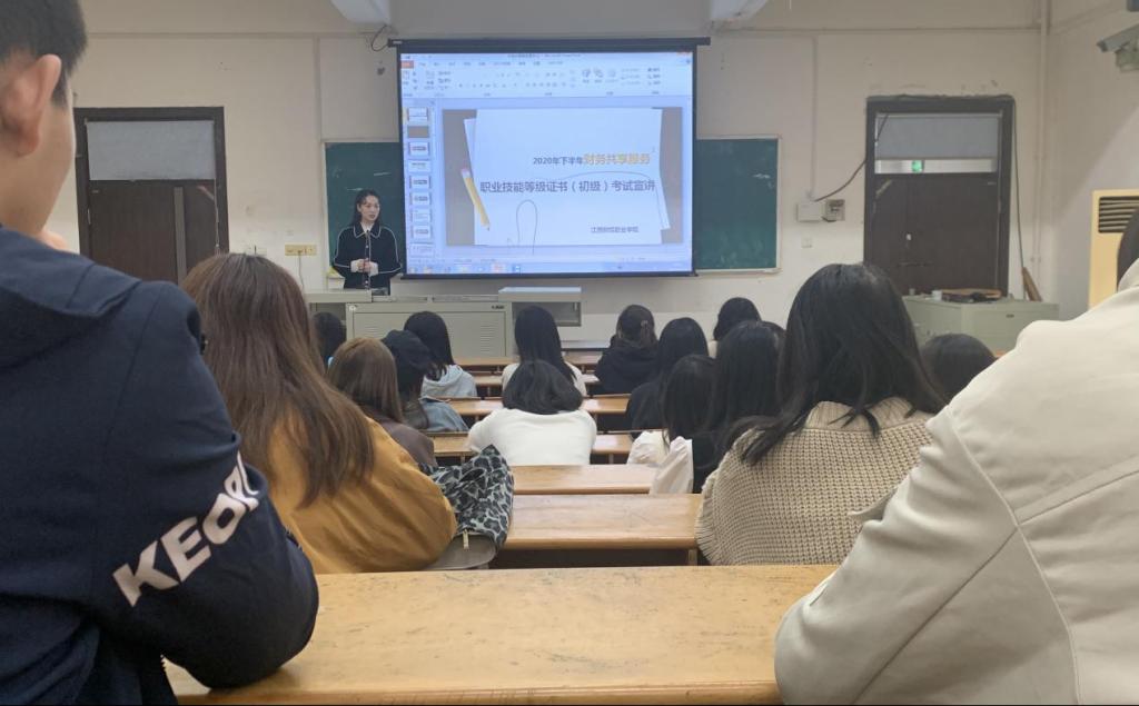 首先,程老师对本次说明会的内容进行了简要说明,并向各班学习委员介绍1+X证书的背景和具体含义,即“1”为学历证书,“X”为若干职业技能等级证书。接着,吴菁菁老师进行了由审计教研室负责的财务共享服务证书培训的宣讲。