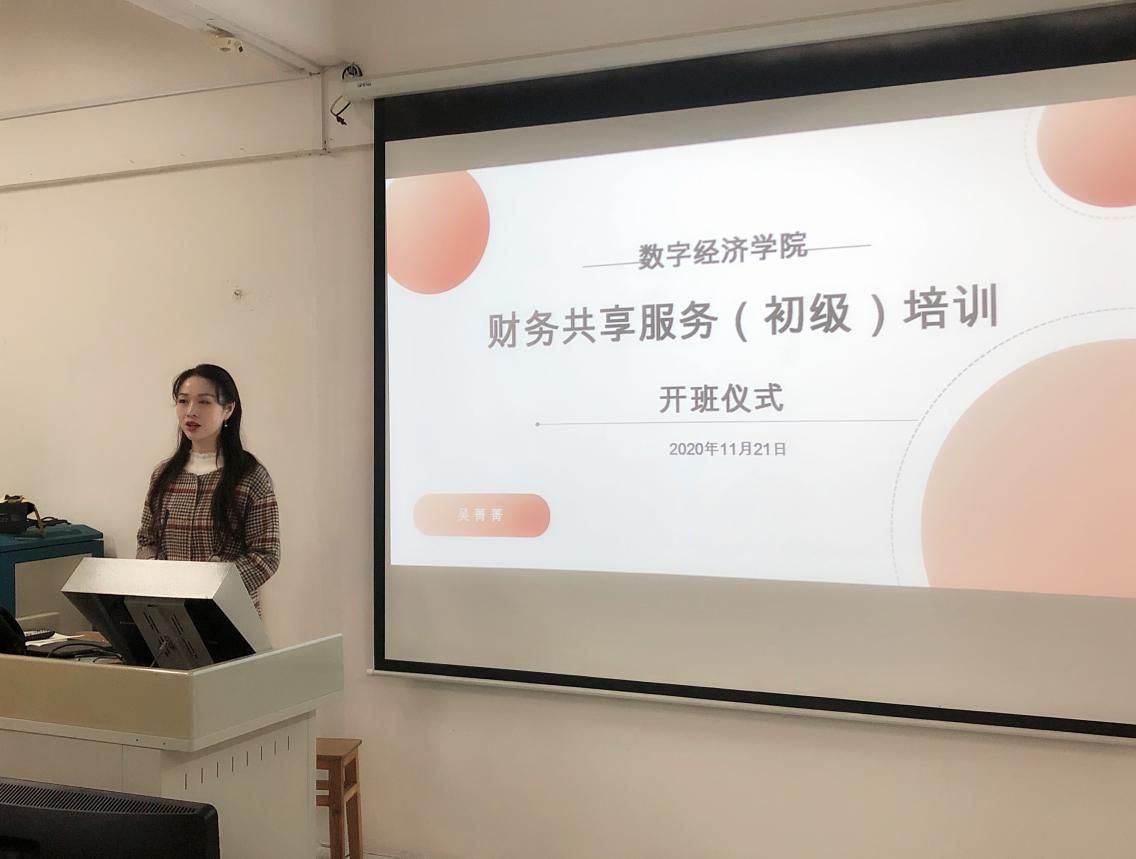 2020年11月21日上午,数字经济学院在综合楼707教室举行了财务共享服务1+X证书培训班开班仪式,仪式由审计教研室主任吴菁菁老师主持,来自18级会计专业和18级审计专业的60名学生参加了开班仪式。